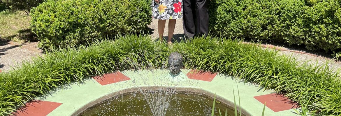 Lastly, Anne, Edward, and their guests found quiet and rejuvenation by the pond and fountain at the garden’s far end. Classically symmetrical in layout, this fourth room was centered on a circular concrete pool terminating the garden’s central axis and accessed by a shrub-lined walk. Reflecting the garden’s golden years most poignantly, however, is a cast iron African head found at the pond’s edge, a gift to the Spencers by W.E.B. DuBois and named by Anne “Prince Ebo.”