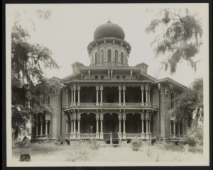 The Longwood admired by Bill Hunt was one of six plantations belonging to the pro-Union Haller Nutt and his wife Julia. Totaling approximately 43,000 acres, this land was worked by an enslaved force of eight hundred people, some of whom labored at the family’s Natchez Longwood home. As Mac Griswold writes in The Golden Age of American Gardens (227-229), Longwood’s ninety-acre grounds were a picturesque combination of “parkland and ornamental garden” overlooking the river, the wooded sections mixing native trees with exotic and colorful non-native specimens. Said to be the creation of a Philadelphia landscape gardener, Mark Kyle, the formal gardens consisted of fifteen terraced acres, ten being devoted to the cultivation of “500 varieties of roses.” Like other such sites, Longwood’s grounds also featured vegetable gardens and orchards, these becoming invaluable to Julia Nutt in the lean post-1865 years.